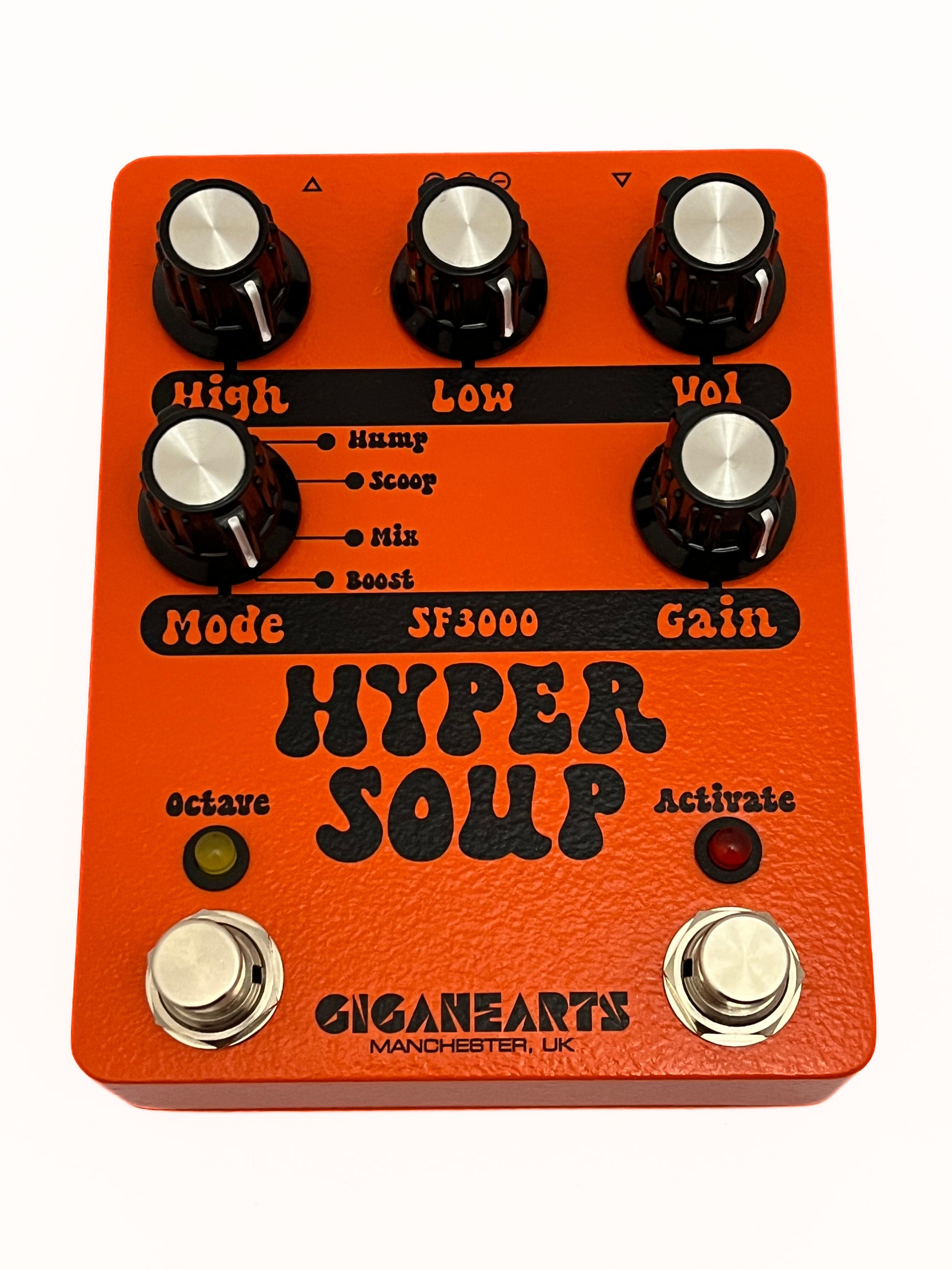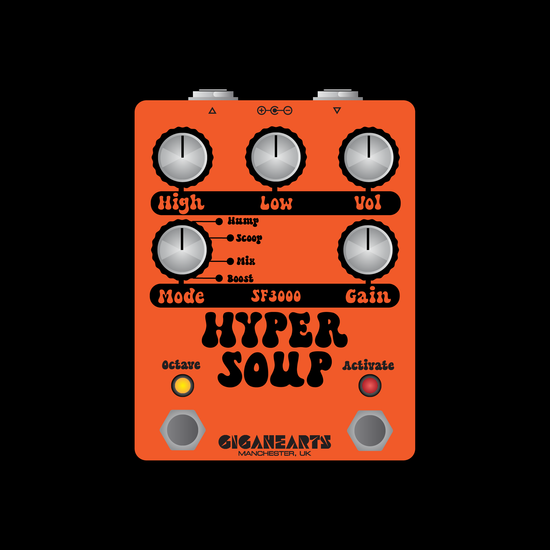 The answer is of course yes, yes and yes. The Hyper Soup is an evolution of a circuit that dates back to 1968 from Japan, which combines a multi-voiced fuzz with a searing octave effect. These basics were first expanded upon by the FZ-2 from 1993-1997 which furthered the design with a boost section and powerful EQ. Most famously used by Electric Wizard on their seminal album "Dopethrone", the blistering tones have since become legendary.