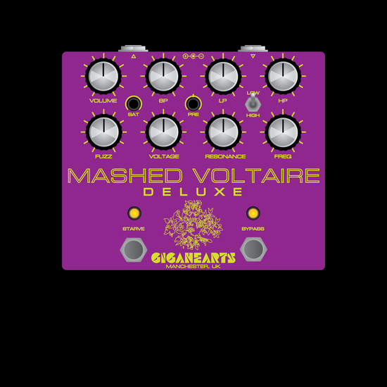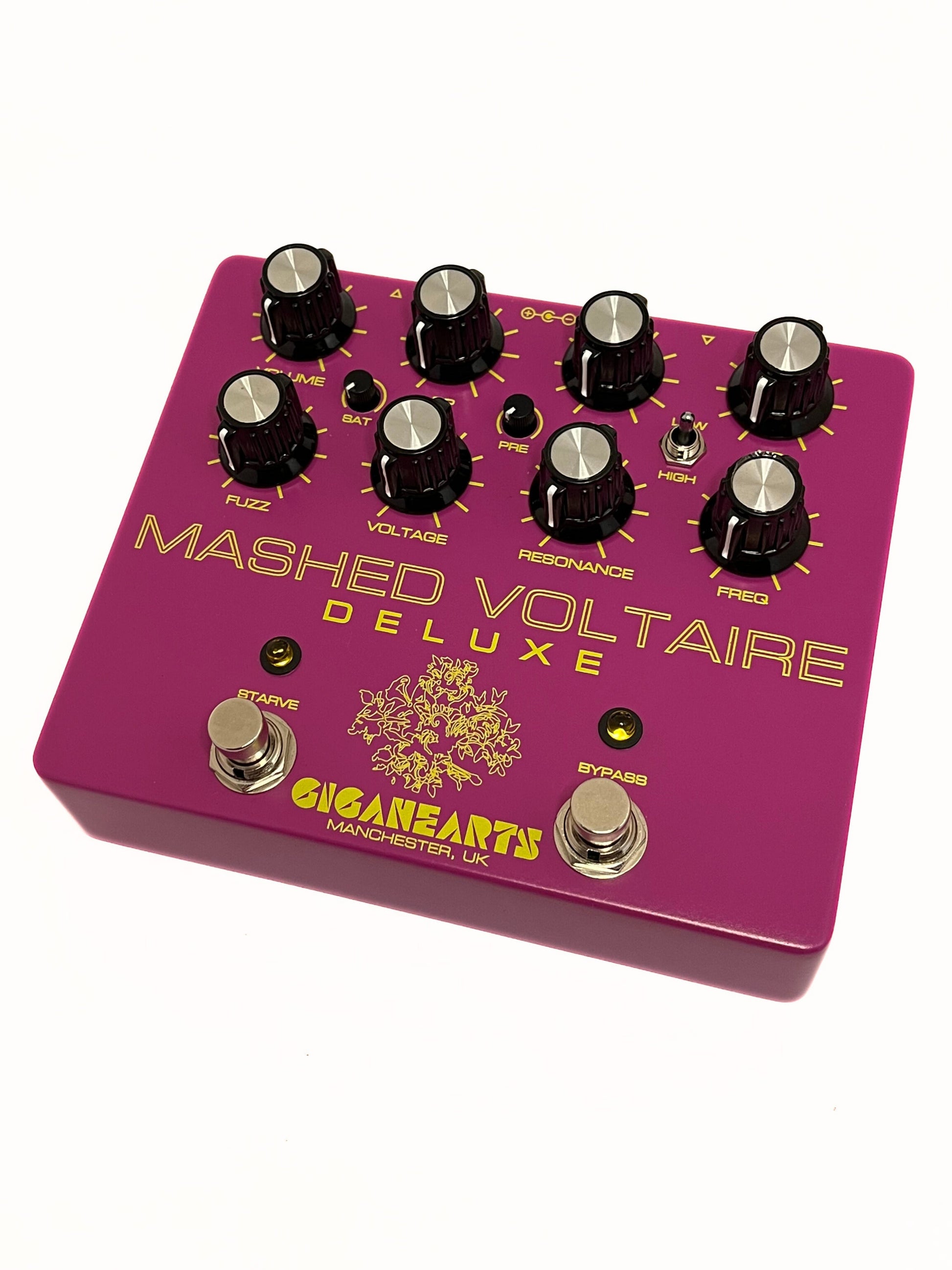 So...we took the standard Mashed Voltaire and did unspeakable things to it, all in the name of the science of fuzz. Extra gain staging, comprehensive (borderline ridiculous) control over all aspects of the distorted tone, expanded EQ circuitry and a synth-style resonant filter build out a complete and fresh take on the classic "muff" variant topology